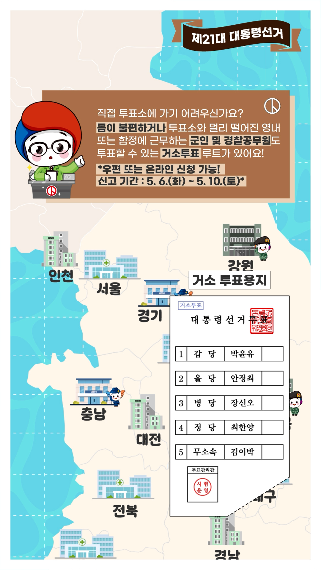 - 대리 투표는 엄연한 불법입니다. 반드시 본인이 직접 투표해야 합니다.