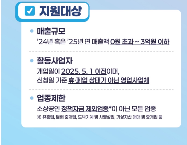 - 연 매출이 3억 원 이하인 소상공인