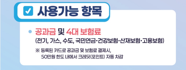 - 등록한 카드에서 공과금이나 4대 보험료 결제 시, 크레딧이 자동으로 차감됩니다.