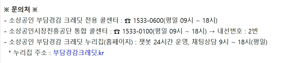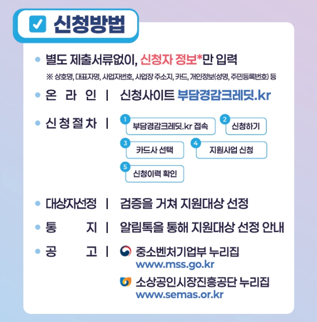 - 부담경감크레딧.kr 또는 소상공인24에서 신청