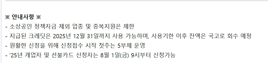 - 지원금 미사용 시 잔액은 자동 소멸됩니다. (2025년 11월 28일까지 반드시 사용)