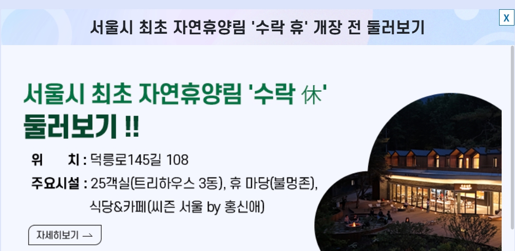 서울 속 힐링 숲, 수락산 동막골 자연휴양림 ‘수락휴(休)’가 정식 개장을 알리며 많은 관심을 받고 있습니다.