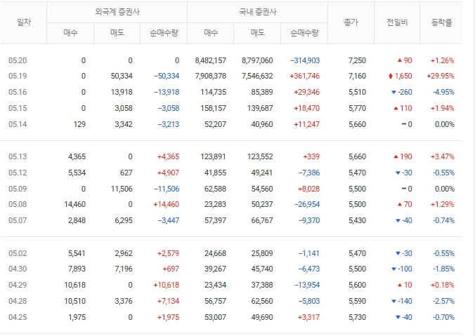 • 저항선: 단기적으로 7,800원, 중기적으로 8,500원 수준이 예상됩니다.