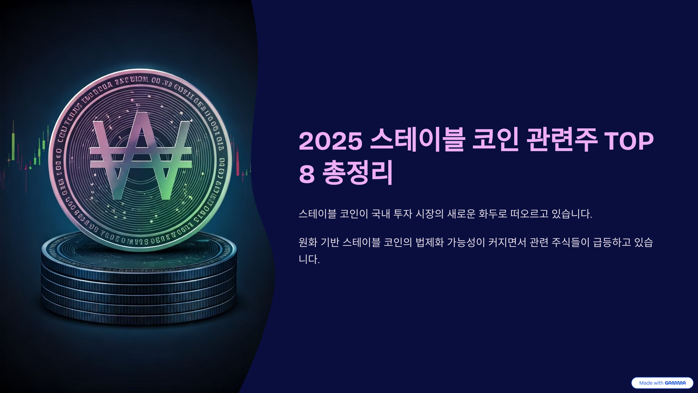 “2025년, 원화 스테이블코인은 더 이상 먼 얘기가 아닙니다. 관련주 선점이 곧 기회가 될 수 있습니다.”