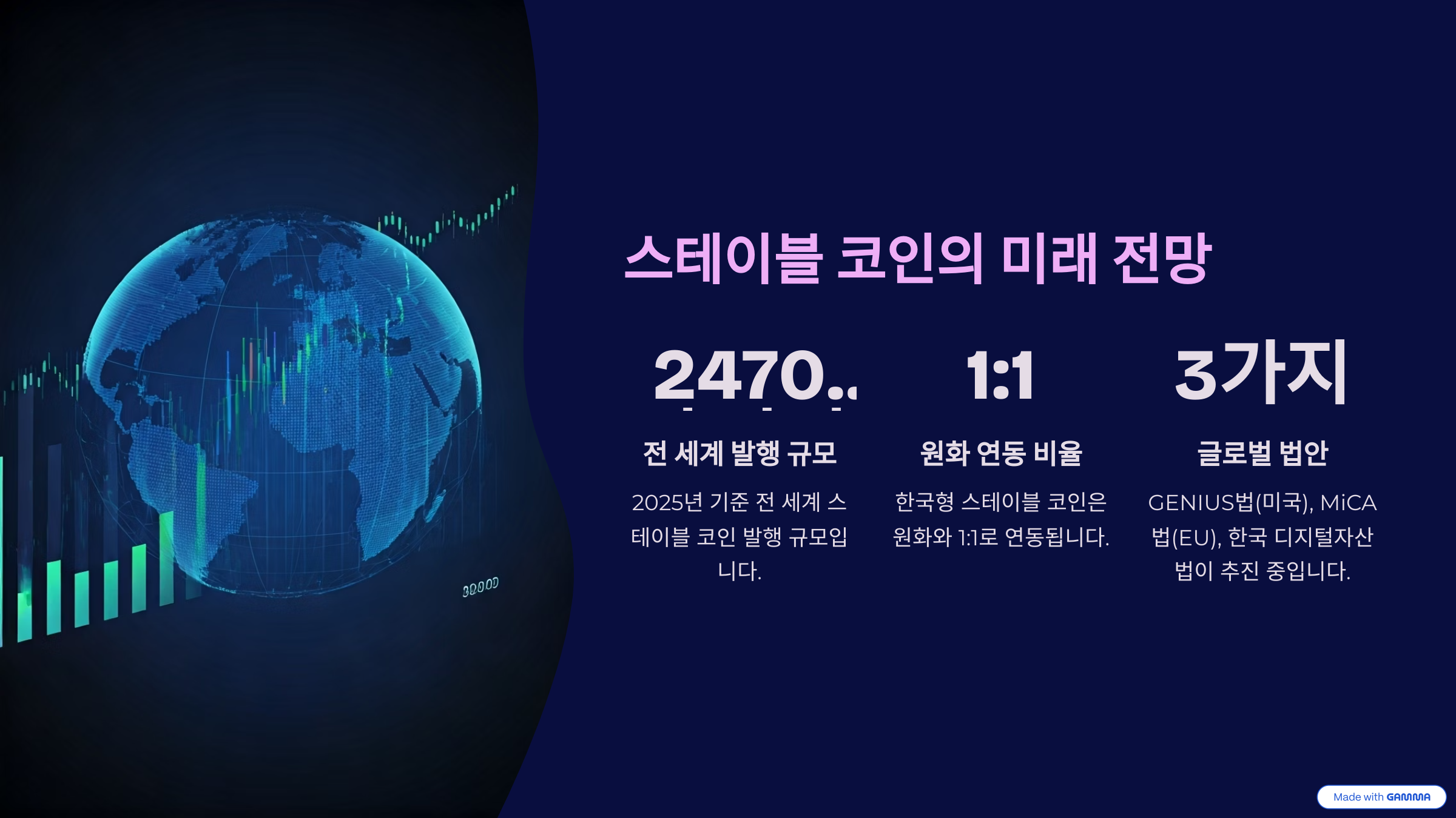 - 🏛️ 제도권 편입 가능성: GENIUS 법(미국), MiCA 법(EU), 한국 디지털자산법