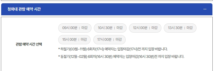 - opencheongwadae.kr 접속 → 예약하기 클릭 → 날짜 선택 시 “잔여 좌석 실시간 확인 가능”