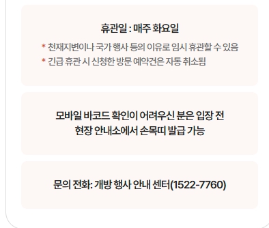 | 입장 조건 | 예약확정 문자 + 신분증 필수 지참 |