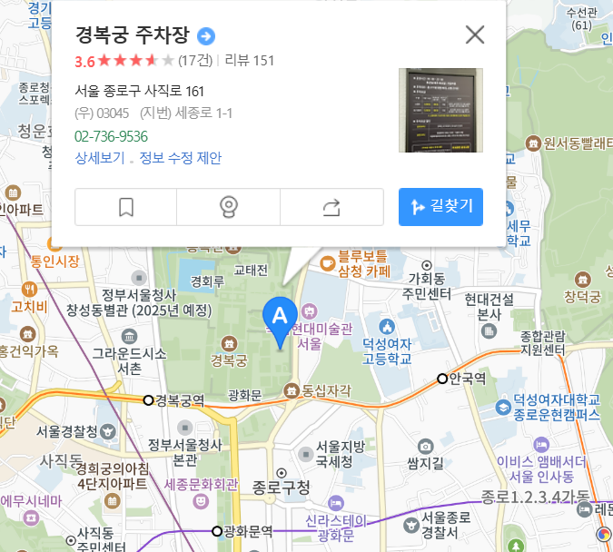 | 대중교통 | 경복궁역 or 안국역 + 버스 이동 효율적 |