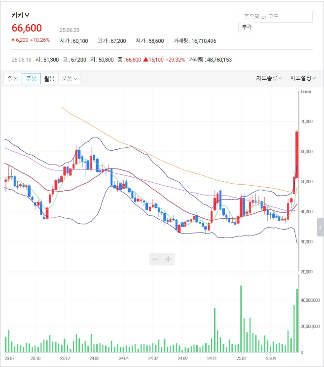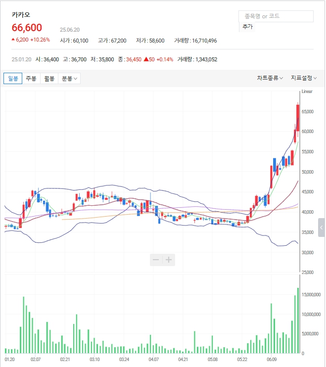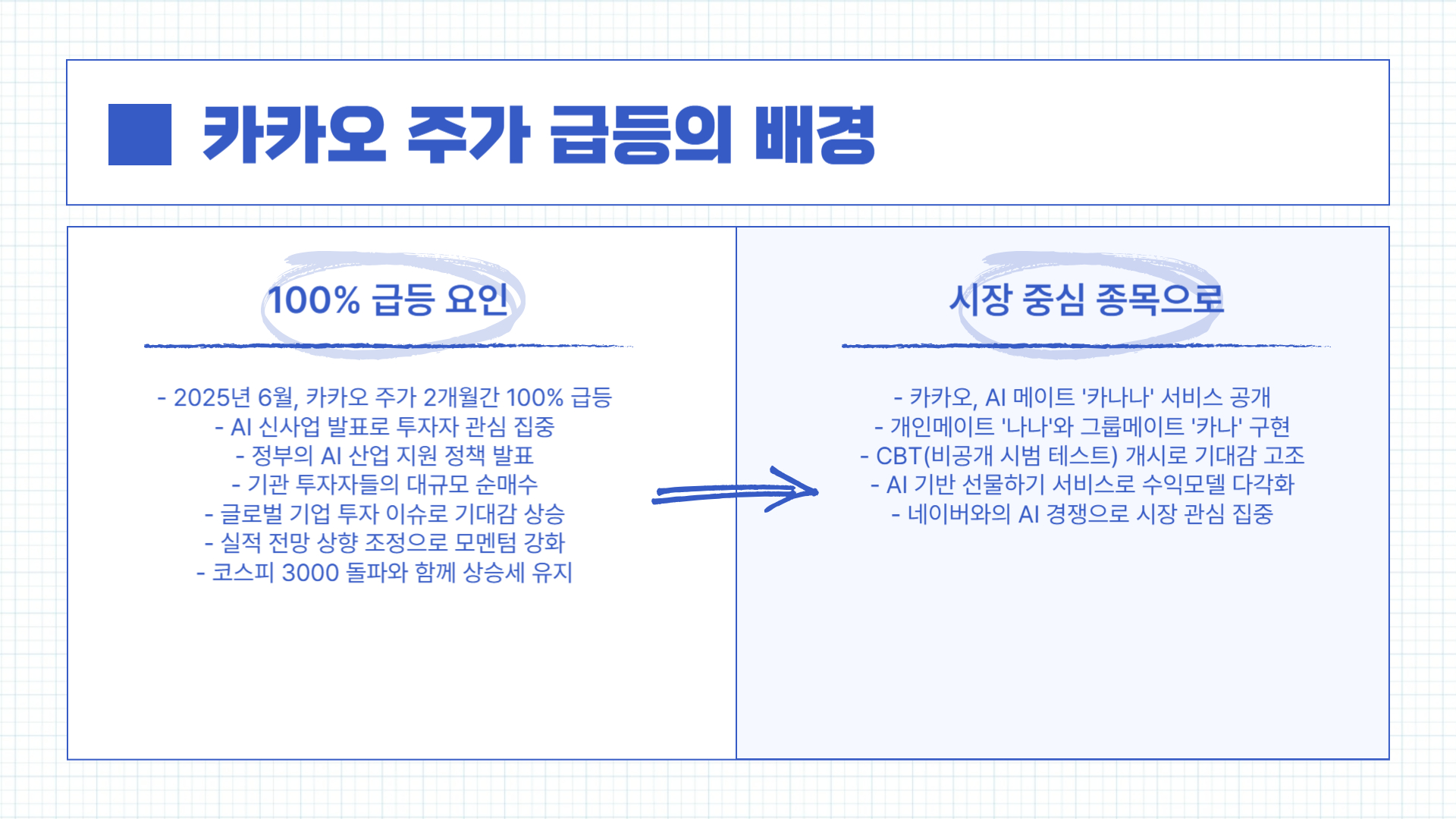 2025년 6월, 카카오 주가가 두 달 만에 무려 100% 가까이 급등하며 시장의 중심에 섰습니다.