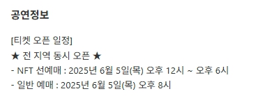 - 🎟 일반 예매: 2025년 6월 5일(목) 오후 8시