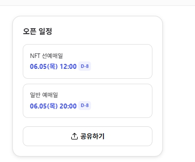 - NFT 소지자 전용 선예매(6/5 낮 12시~6시)